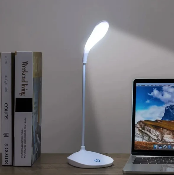 TAŞINABİLİR VE AYARLANABİLİR BEYAZ RENK DOKUNMATİK ŞARJLI MASA LAMBASI KİTAP OKUMA LAMBASI