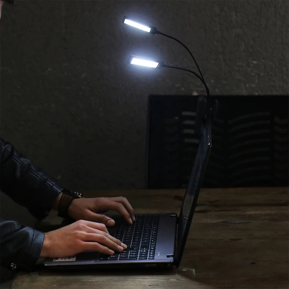 Powermaster Cob Led 5 Volt Usb Siyah Masa Lambası Beyaz Işık Akrobat Esnek Ayarlanabilir Kitap Okuma Lambası