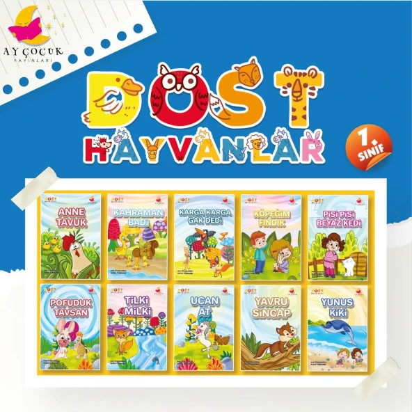 1. Sınıf Hikaye Kitabı Seti 10 Kitap Dost Hayvanlar Ay Çocuk Yayınları