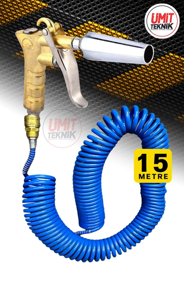 Yeni Nesil Kompresör Spiral Hava Hortumu 8 mm 15 mt Hava Jakı Hava Tabancası Recor Seti