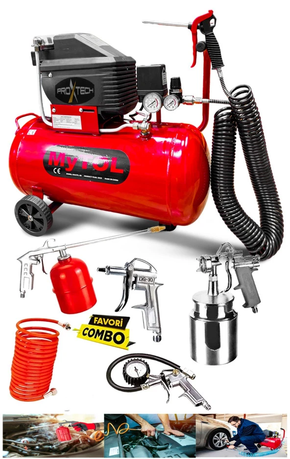 EnÇok Tercih edilen 2HP 50 Full PaketHava Kompresörü Boya,Lastik,Mazot Temizleme 5PCS Havalı Kit