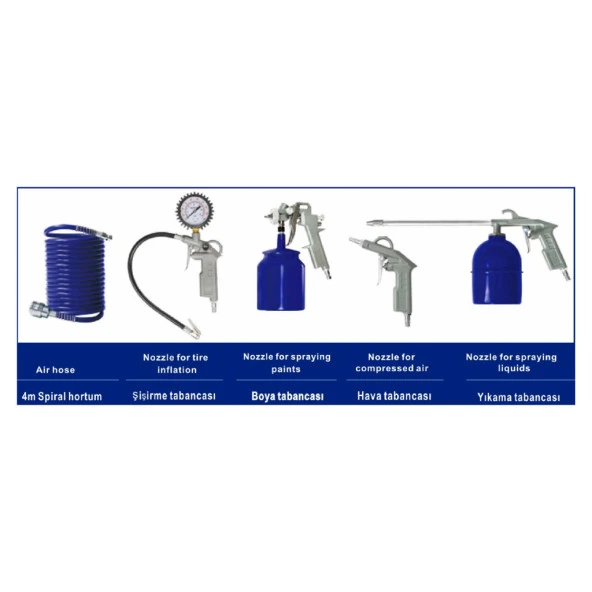 PROXTECH Kompresör Havalı El Aletleri Seti 5 Parça Havalı Boya ve Havalı Set 5 PARÇA