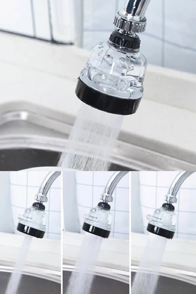 WUVERA Şeffaf 3 Fonksiyonlu Tasarruflu 360 Derece Döner Mutfak Lavabo Başlığı Musluk Ucu