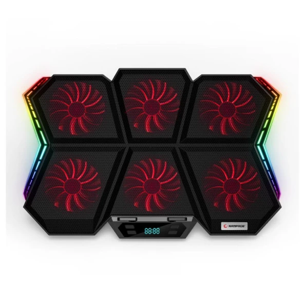 Rampage AD-RX44 X-GALE 6 Fanlı 12 RGB Işık Modlu 7 Kademe Standlı LCD Göstergeli Notebook Soğutucu