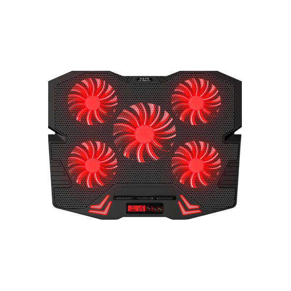 Rampage Mistral S45 Kırmızı Led 5Fan Yükseklik Ayarlı LCD Notebook Soğutucu Laptop Soğutucu 12/17