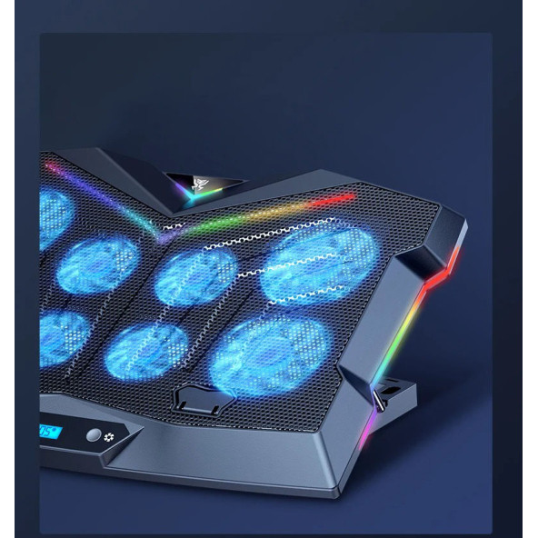 TechTic 8 Fanlı 18-11İnç RGB Işıklı Notebook Laptop Soğutucu Fan Sessiz LCD Pro Stand Çift USB 1 Type-c Giriş