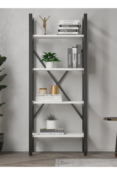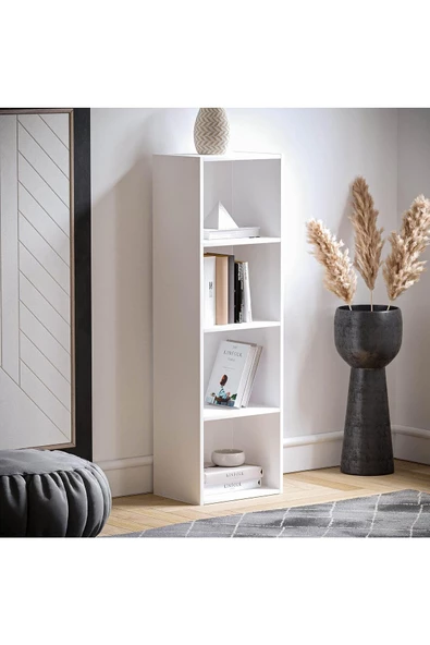 Egecan Mobilya Beyaz 4 Raflı Kitaplık Ofis Ev Dosya Kitap Dolabı Kitap Rafı
