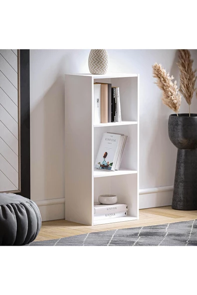 Egecan Mobilya Beyaz 3 Raflı Kitaplık Ofis Ev Dosya Kitap Dolabı Kitap Rafı