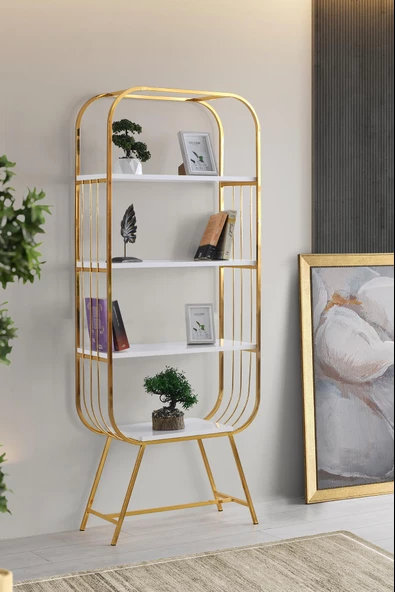 Evdesa Metal Kitaplık Dekoratif Raf Ev Ofis Rafı Kitap Dosya Rafı 5 Raflı Barok