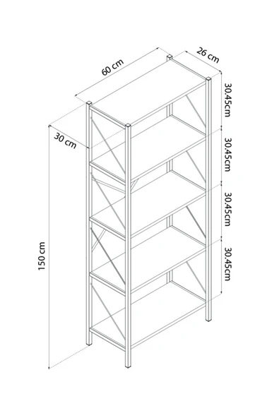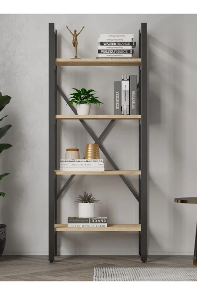 Ayşa Kitaplık ,Çok Amaçlı Dosya Rafı,Kitap,Ofis,Salon Metal Raf 150x60 Cm - Atlantik Çam