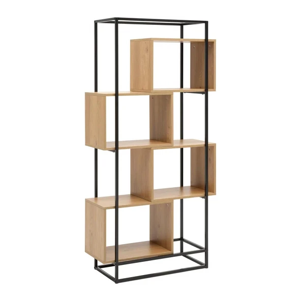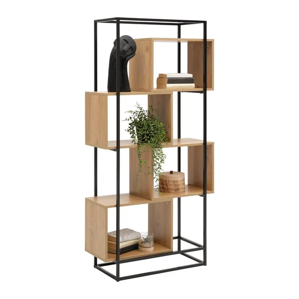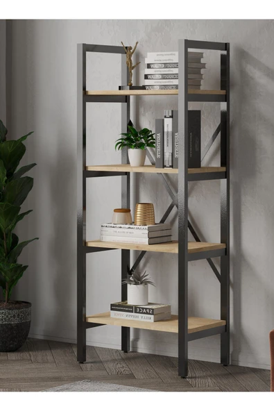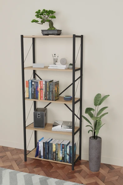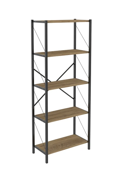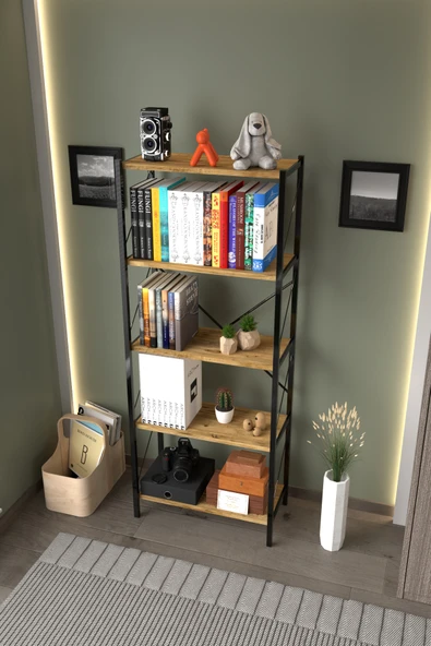 ASRIN Metal Kitaplık 5 Raflı Dekoratif Kitaplık Dosya Kitap Rafı Ofis Ev Rafı Kitap Raf Atlantik Çam