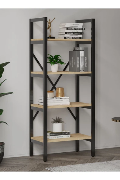 Ayşa Kitaplık ,çok Amaçlı Dosya Rafı,kitap,ofis,salon Metal Raf 150x60 Cm - Safir Meşe