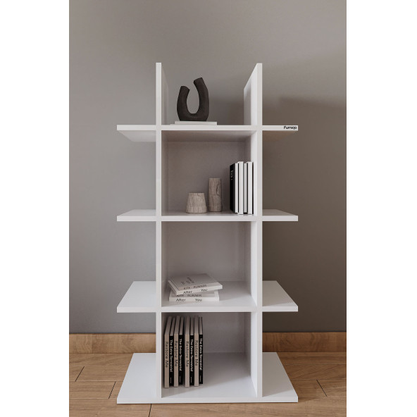 Furniqo Kt-1 Dekoratif Kitaplık, Raf Düzenleyici, Kitap Rafı, Beyaz 70x25x130 Cm Kitaplık
