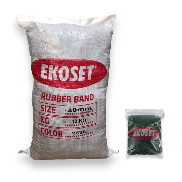 Ekoset Kauçuk Paket Ambalaj Toka Para Lastiği 40mm Yeşil 1Kg