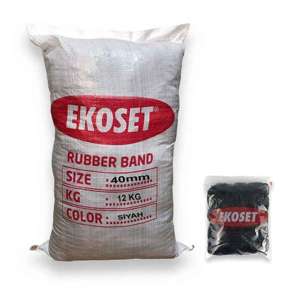 Ekoset Siyah Paket Ambalaj Toka Para Lastiği 40mm 1Kg