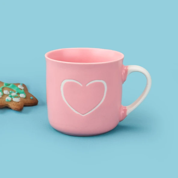 Houseware Kalp Desenli Porselen Kupa - Pembe / Beyaz - 320 ml