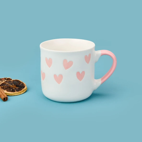 Houseware Kalp Desenli Porselen Kupa - Beyaz / Pembe - 320 ml