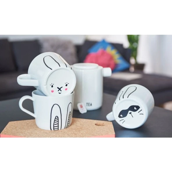 Houseware 7 Kalp Desenli Porselen Kupa - Beyaz / Pembe - 320 ml