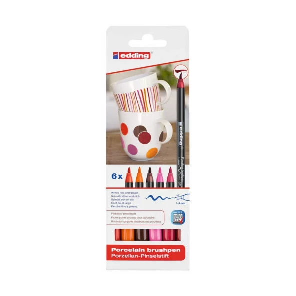 Edding Porselen Boyama Kalemi 6 lı Sıcak Renkler Alman Markası Edding Porselen Boya Kalemi