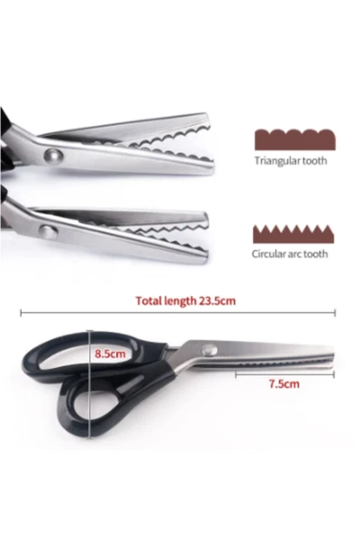 Artus Tedarik Zig Zag Kumaş Deri Kağıt Kesim Terzi Sürfile Makası 23.5 Cm