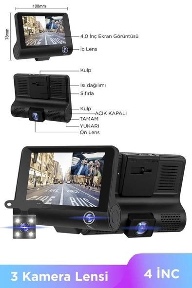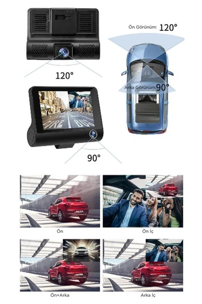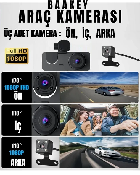 3 Kameralı Araç Içi Full Hd Kayıt Kamera