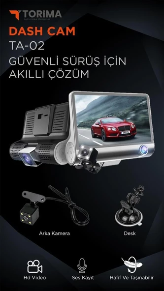 Torima TA-01 Siyah 1080p Araç içi 3 Kameralı Lcd Ekranlı Gece Görüşlü Araç Kamerası