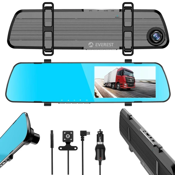 EVEREST X-03 4.7 İnç Aynalık Araç Kamerası Dvr Kayıt + Geri Görüş Kamera