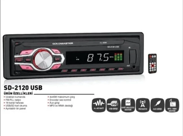 Navigold Stn-302 Çift Usb Girişli Bluetooth Araba Oto Teyp Sd Aux Teyp Amfi Çıkışlı Kumandalı Rgb Işıklı