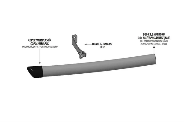 Dacia Dokker Krom Boru Çap:60 Arka Basamak Plastik Kapak 2012-2021 Arası
