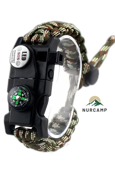Nurcamp Paracord Kamp Bileklik Hayatta Kalma Bilekliği