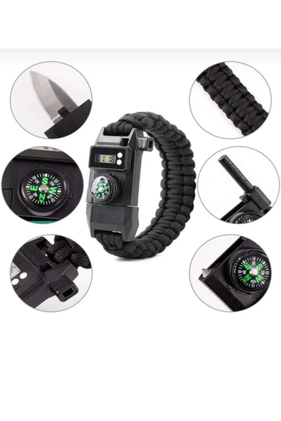 3B Trend Survıval Pusulalı Hayatta Kalma Bilekliği Kamp Bileklik Düdük Çok Amaçlı Outdoor Aksesuar