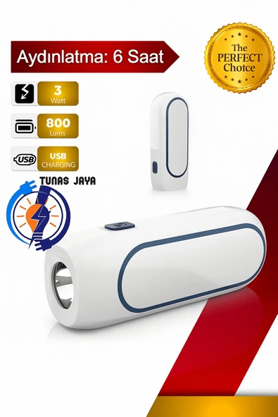 Taşınabilir Şarjlı El Feneri, Çift Aydınlatmalı LED Işık, Acil Durum ve Kamp Lamba 6 Saat Kullanım