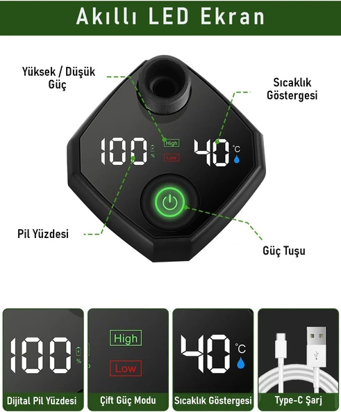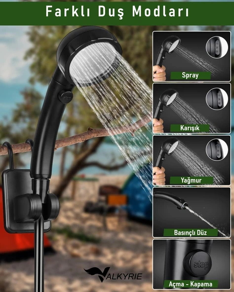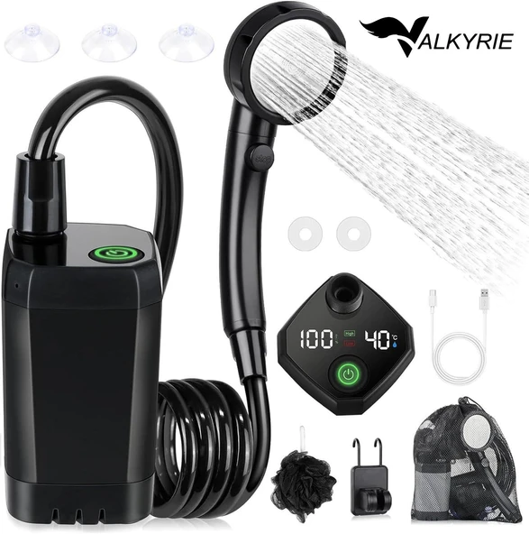 Valkyrie Akıllı LED Ekranlı Taşınabilir Duş & Su Pompası – Kamp Bahçe ve Seyahat için Şarjlı Kolay Kurulum