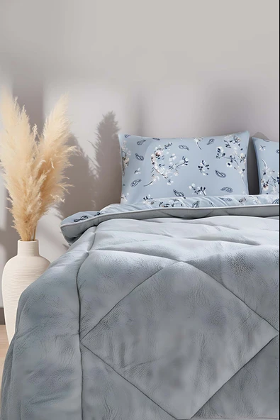 Rivaİstanbul Gri Çiçekli Loura Tek Kişilik Çift Taraflı Lüx Wellsoft Yorgan Seti 155x215 cm