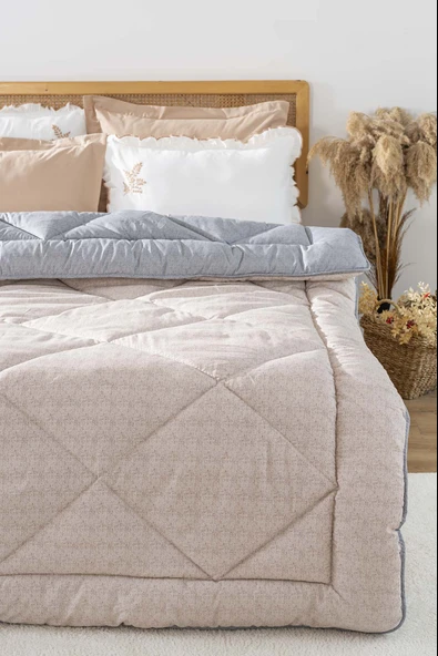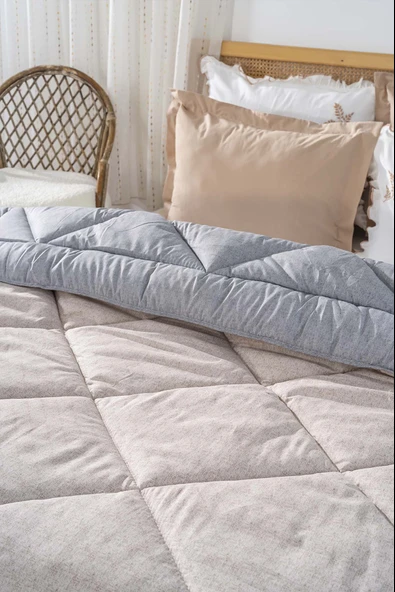 Rivaİstanbul Bej-Gri Modie Çift Kişilik Çift Taraflı Lüx Yorgan 195x215 cm