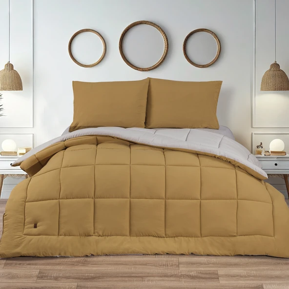 Schafer Home Softy Comfort Yorgan Seti 4 Parça-Gri/Hardal