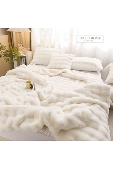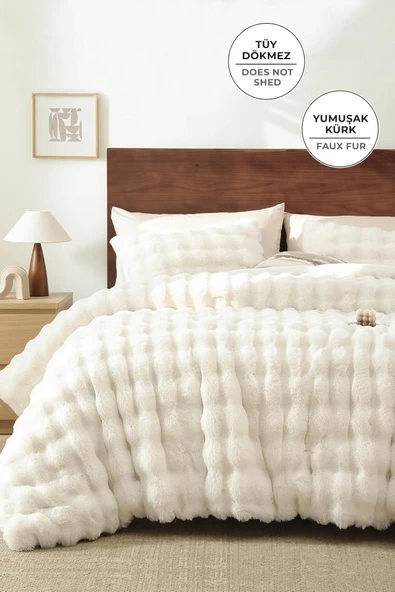 Kürk Yatak Örtüsü Çift Kişilik Dolgulu Peluş Yumuşak Çift Taraflı Yorgan 3 Parça Lory Kahve