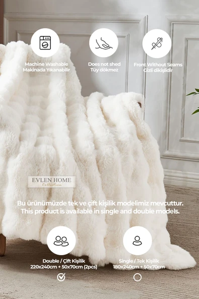 Rivaİstanbul Bej Kareli Tek Kişilik Çift Taraflı Lüx Wellsoft Yorgan Seti 155x215 cm