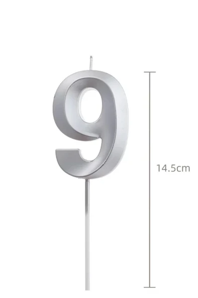 Beysüs Gümüş Rengi 9 Rakam Pasta Mumu