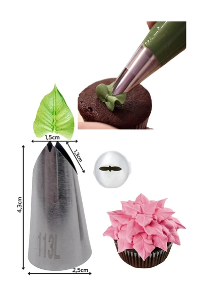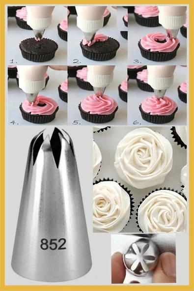 Siliko World Paslanmaz Çelik Krema Sıkma Torbası Ucu (Şanti Torbası Ucu, Gül Duy) 1 Adet + 4 Adet Şanti Torbası