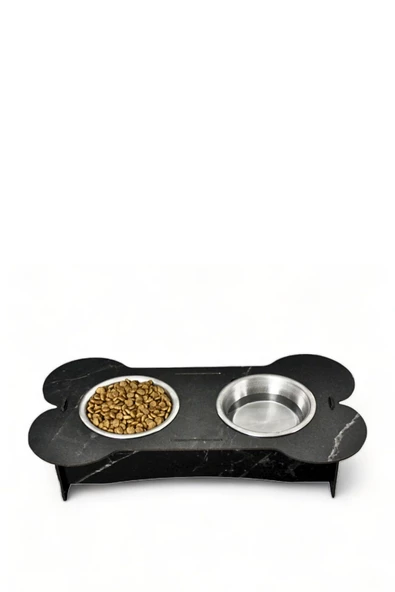 Evene Kedi Mama Kabı Kedi Su Kabı Kedi Mama ve Su Kabı Kedi Yemek Kabı 2 Çelik Kase Model 3 Siyah Mermer