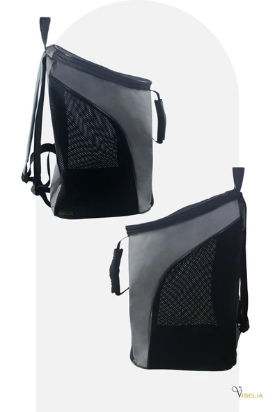 Viselia Kedi Taşıma Çantası Evcil Hayvan Seyahat Kedi Sırt Çantası Fileli Gri