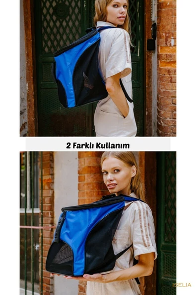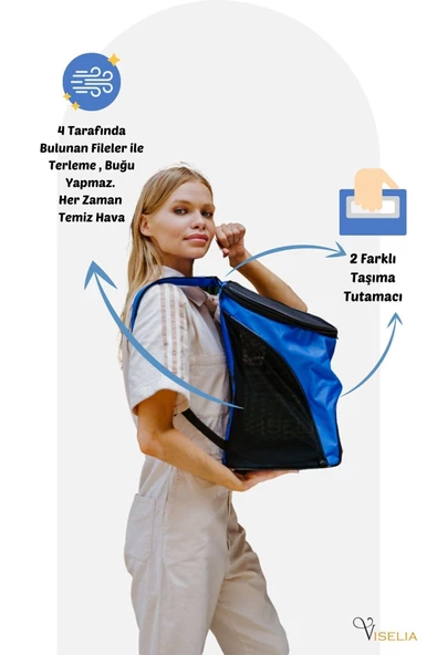 Viselia Kedi Taşıma Çantası Evcil Hayvan Seyahat Kedi Sırt Taşıma Çantası Çift Açılır Mavi