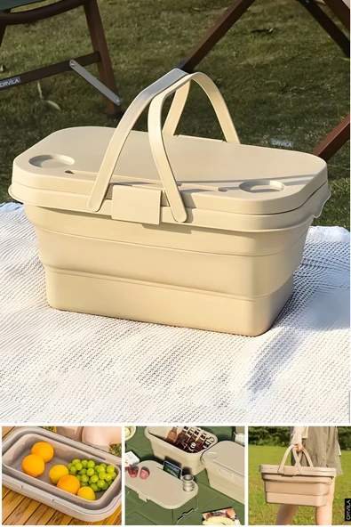 Orvila Orvila Katlanır Piknik Seti | Masalı Silikon Sepet 35 LT Kamp Çantası