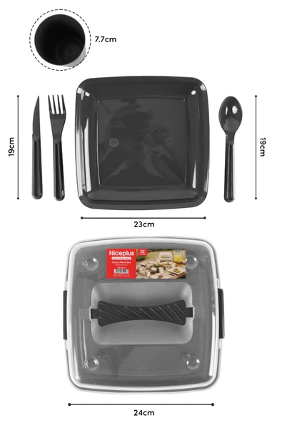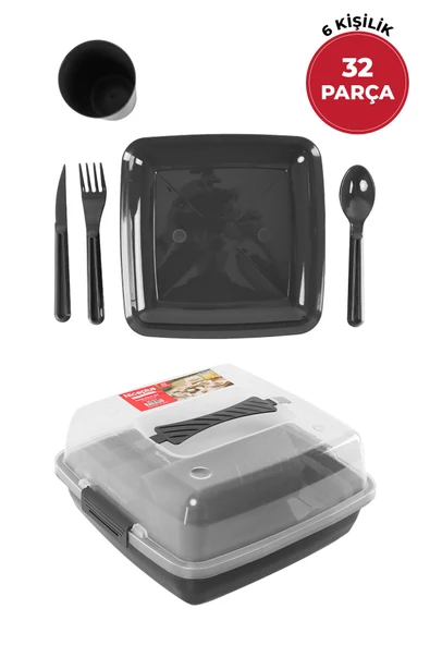 12 Adet Piknik Kamp Seyahat Saklama Kutusu | Antrasit Dikdörtgen Saklama Kutusu