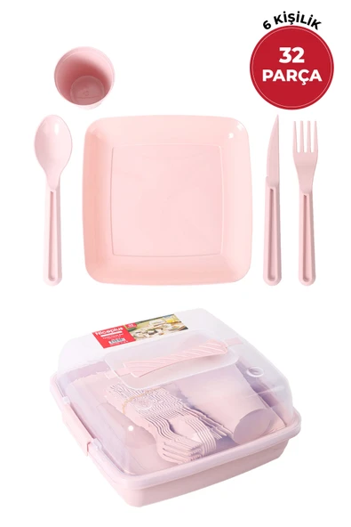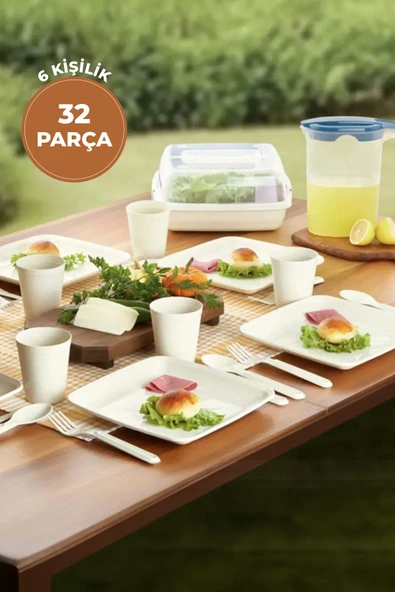 6 Kişilik Taşınabilir Piknik Kamp Seti Taşıma Çantalı 32 Parça Servis Piknik Seti