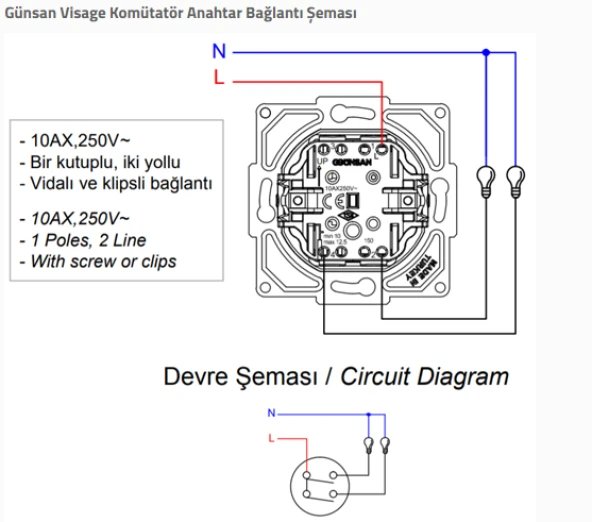 Günsan Visage Beyaz Komütatör Anahtar Çerçevesiz
