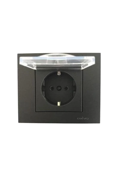 OVİVO Grano Metalik Siyah Kapaklı Topraklı Priz Çerçeveli