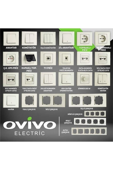 OVİVO Ovivo Grano Beyaz Anahtar Çerçeveli