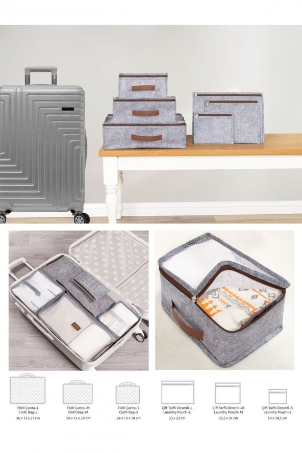 Deri Detaylı 6lı Set Bavul Içi Düzenleyici, Bavul Organizer, Valiz Düzenleyici-gri